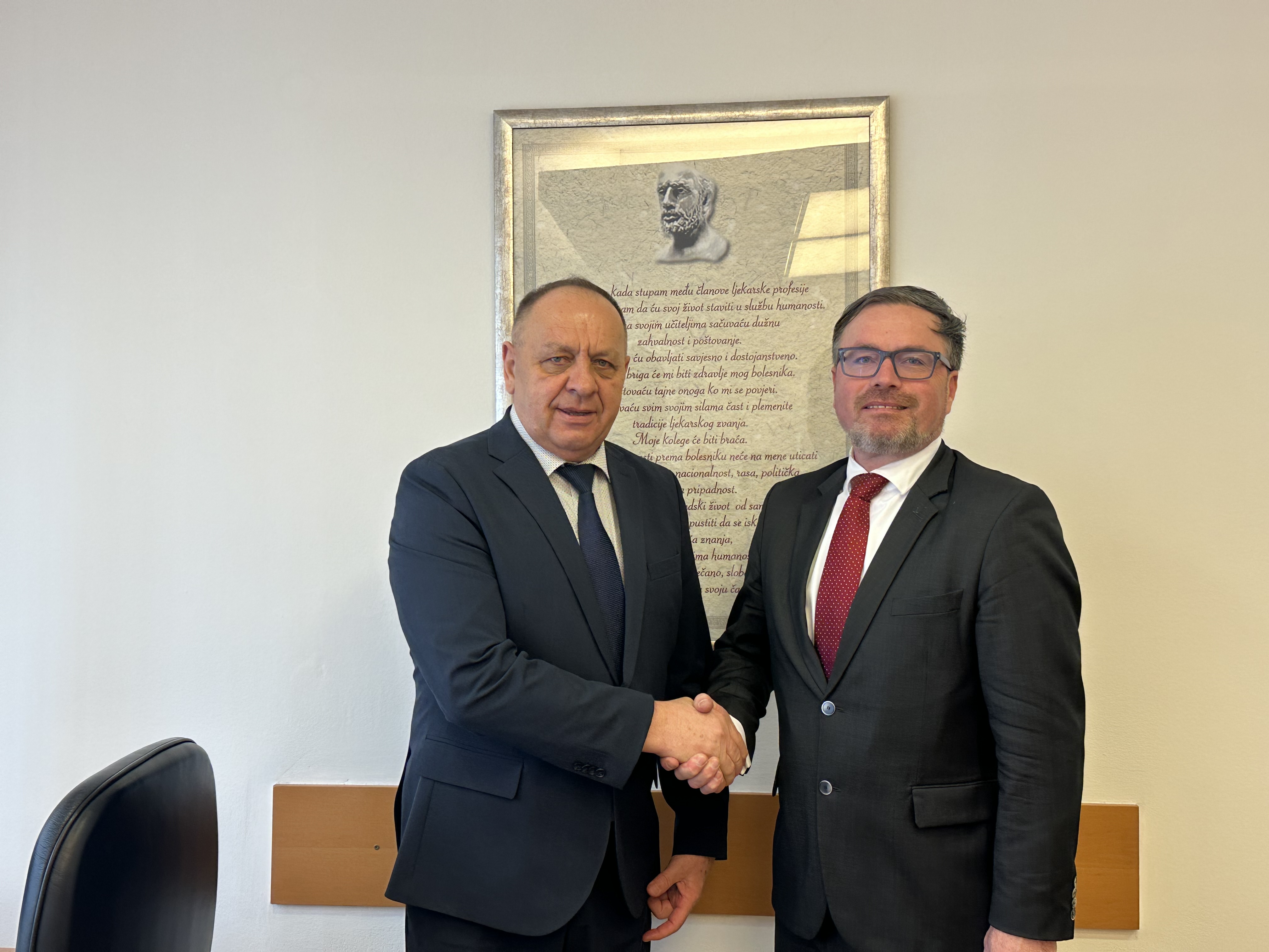 Posebna pažnja posvećena je suradnji u području transplantologije, uključujući mogućnosti suradnje kroz sustav Eurotransplanta, kao i značaj stručne i tehničke potpore u razvoju transplantacijskih programa. Sugovornici su istakli važnost regionalne i međunarodne suradnje u cilju unapređenja zdravstvenih usluga i ishoda liječenja pacijenata.